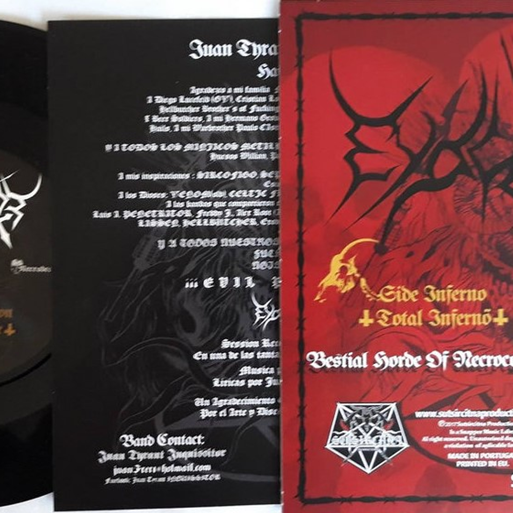 The blackaned thrash metal act Eyaculator make their debut appearance with this 7″ of raw black trash from the town of Quito in Ecuador. The Bestial Cruelty Under The Sign Of Satan 7″ features two totally destructive songs of hate and destruction in the vein of old school Finish black metal cult Impaled Nazarene. Recommended for all followerd of this extreme band.