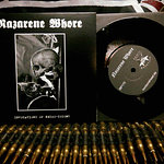 Sure to be one of the most year's most vile and perverse records,Invocations of Necro-Sodomy/Dark Realm Mysticism unites two ofthe black metal underground's nastiest cults, NAZARENE WHOREand NOCTURNAL EVIL. Both one-man entities have been plying theirdirty trade for over a decade now, prolifically defiling the undergroundwith a foul, fetid foundation firmly built upon early Beherit and Havohej.NAZARENE WHORE is the foremost band of American Ray Rivera, who'salso done Sacreligious Torment, Anuus Altaar, and seemingly a hundredother projects; here, he vomits forth three nun-raping rituals.NOCTURNAL EVIL is the work of Argentina's Eric "Nocturnal" Lancon, latelyknown for his band Infernal Curse and also the main mind behindBaphometal Zine & Productions; here, he churns out one torrent ofblackshitnoise. Together, trendy ears shall be bespoiled by this split 7".