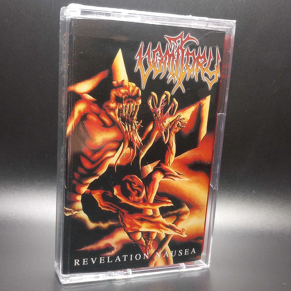 Though their sophomore effort Redemption was a great album, it is Revelation Nausea where Sweden's paint-peeling fist of death dialed the aggression up a notch and sprayed their demon seed upon the womb of blasphemy. Vomitory is adept at one thing: taking the brutality of roots Swedish death metal and cranking it to oblivion. Revelation Nausea is a near flawless eruption of energetic diabolism to send poseurs packing.The title track begins with a fitting sample before laying down an intense pileup of aggressive melody and blasting violence. Bonesaw rhythms and excellent but simple selection of notes are refined through the holocaust of the album's mix. Though they lean towards the faster pace, the band is fully capable of incorporation breakdowns, as in "The Corpsegrinder Experience" with its insane old school break at about 1:27. There is nigh a weak song to be had on this album, each exemplifies the pure thrust of old school death smothered in crushing brutality and 21st century production standards. "Beneath the Soil" pulverizes with its d-beat verses and grinding destruction. "The Art of War" incorporates a Hellhammer-like groove into some sinister pure death metal guitar lines. "When Silence Conquers" is an amazing slower track which picks up to mid-pace for some killer riffing. "Exhaling Life" is another of my favorites with some moody and intense guitars. Looking back over a career which has brought us many excellent albums, I have to admit that Revelation Nausea may be my top choice, with Primal Massacre close behind. It's a top notch Swedish death metal record which belongs in the company of its influences like Entombed and Dismember. If you're fond of the crushing, beautiful tone bands of this ilk and national alignment tend to create, this is essential.